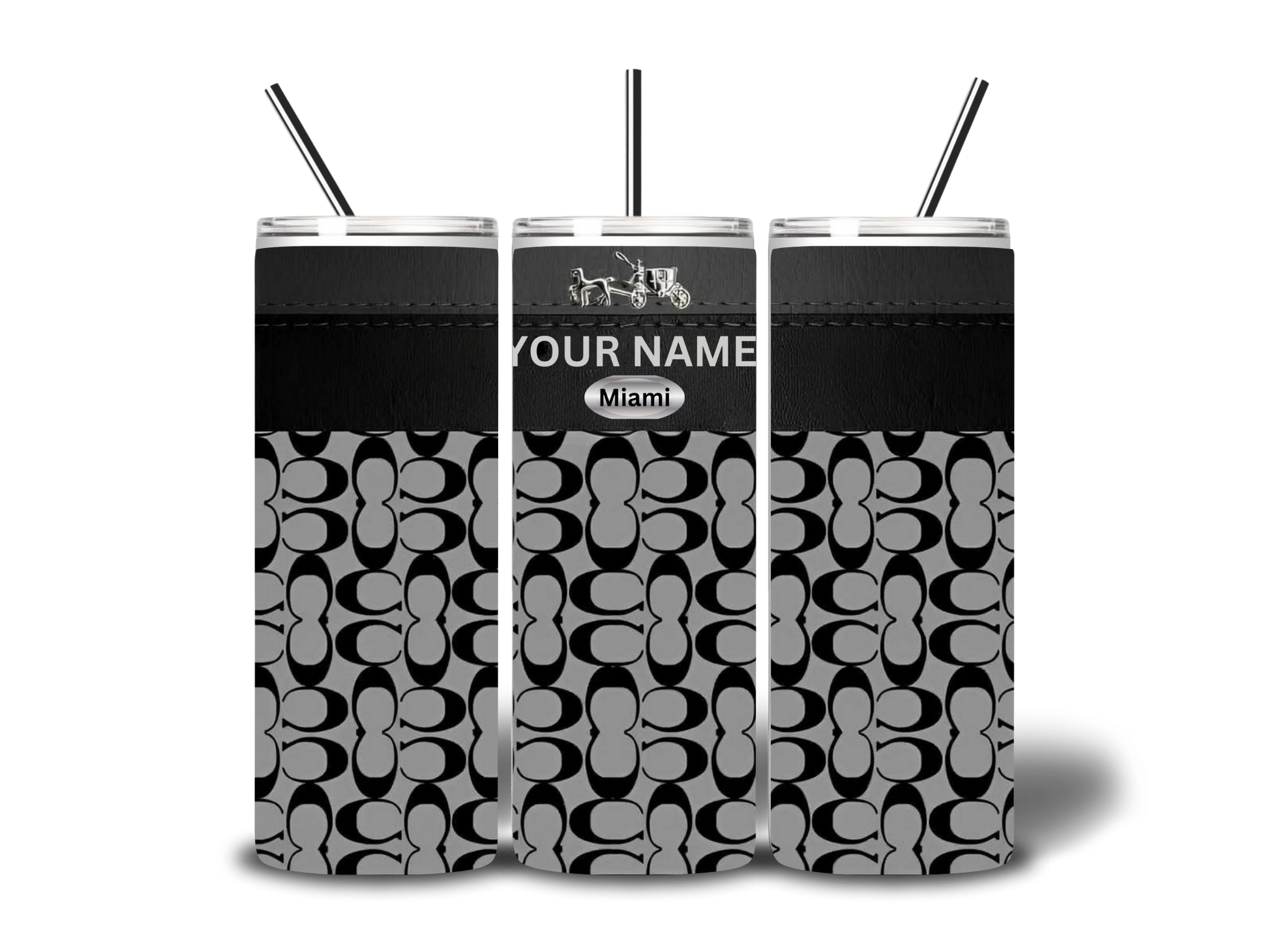 Our Personalized Signature City Tumbler features a sleek monochrome pattern paired with your custom name and city badge, creating a refined, designer-inspired look. Perfect for everyday use or gifting, this tumbler blends minimal elegance with personal style. More color options available.Â